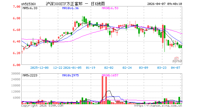 4月7日,沪深300ETF方正富邦(515360)开盘涨0.65%,报6.325元。沪深300ETF方正富邦(515360)重仓股方面,宁德时代开盘涨0.91%,贵州茅台涨0.00%,中国平安涨0.09%,中际旭创涨0.24%,紫金矿业跌0.33%,招商银行跌0.03%,新易盛跌1.16%,美的集团涨0.00%,兴业银行涨0.05%,长江电力涨0.04%。